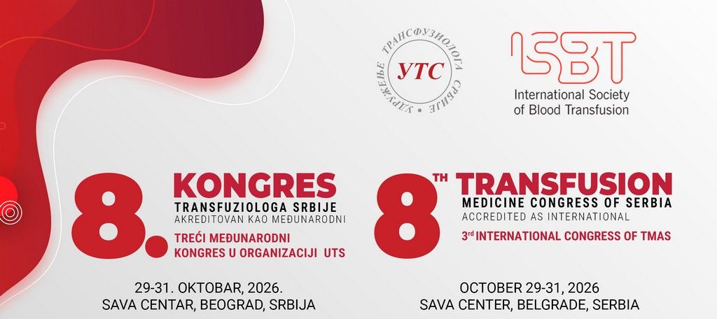 8. Kongres transfuziologa akreditovan kao međunarodni i Treći međunarodni kongres u organizaciji Udruženje za transfuziologiju Srbije (UTS)